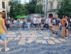 Някои носеха тениски с надпис „Не пипайте стипендиите“, други скандираха „Съюз на студентите в Румъния“ и удряха барабани. Те поставиха кашон с надпис „кутия за подаяния“, а около него по земята наредиха плакати с надпис „Образованието не е само за онези с пари“, „Вие имате бюджет, ние имаме грижи“, „Магическо решение за дефицита: режем бъдещето на страната“, „Стипендиите са наши“, „Образована Румъния, но по задължение“, „Още ли ме питаш защо искам да напусна страната“, „Няма да паднем, няма да си тръгнем, ще защитим стипендиите“, „Стипендиите не са милостиня, а са заслуга“, „От стипендиите няма да направите богатство“. "Стипендиите няма да се режат утре, искаме справедливост, не срам", скандираха демонстрантите.