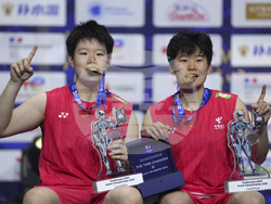 На жени двойки поставените под номер 1 Шън Шу Лю и Нин Тан (Китай) спечелиха трудно срещу вторите в схемата и в световната ранглиста Пърли Тан и Тина Муралитаран (Малайзия) с 21:14, 20:22, 21:17. Представителките на Малайзия победиха на четвъртфиналите българките Стефани Стоева и Габриела Стоева с 21:15, 21:10.