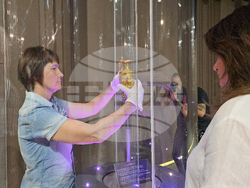 Репортер на БТА беше допуснат в залата трезор, докато специалисти от Националния исторически музей и Историческия музей в Панагюрище подреждаха оригиналните съдове на мястото на 22-каратовото копие.