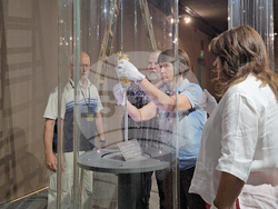 При засилени мерки за сигурност ювелирната находка беше посрещната от директора на музея доц. д-р Атанас Шопов и уредници и служители на музея.