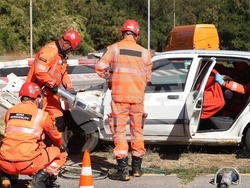 „За съжаление това е демонстрация за действие при тежки пътнотранспортни произшествия с пострадали. Нашата дирекция се отзовава чрез повикване през 112 и помага на екипите на пожарната, на пътна полиция и на охранителна полиция. Ние помагаме за охраняване на мястото на произшествието. Подпомагаме ги също с техника и хора за изваждане на пострадалите от автомобилите“, разказа за БТА директорът на дирекция „Аварийна помощ и превенция“ Красимир Димитров.