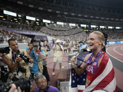 Американката Кейти Муун стана първата жена с три поредни световни титли в дисциплината овчарски скок, след като завърши на първо място с рекордните за сезона 4.90 метра на шампионата по лека атлетика в Токио. САЩ записа двоен подиум с второ място на Санди Морис.
