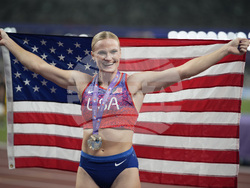 Муун, на 34 години, спечели и олимпийска титла на същата арена в Токио през 2021. Морис, втора от Рио де Жанейро 2016, заслужи четвърто сребро на световни първенства с 4.85 метра, а словенката Тина Шутей остана трета с най-добро постижение 4.80.