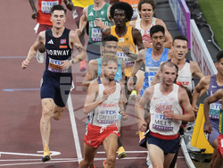 Малко по-рано неговият сънародник Якоб Ингебригтсен преодоля трудно полуфиналите в бягането на 5 000 метра, където е шампион в последните две издания на световните първенства по лека атлетика. Норвежецът, който днес навършва 25 години, се завърна след лечение на травма в ахилесово сухожилие и спечели осмо място във втора серия с 13:42.15 минути. Именно първите осмина в двата полуфинала продължават напред.