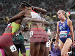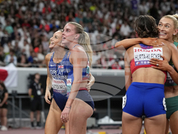 В същата дисциплина при жените щафетата на САЩ Изабела Уитакър, Лина Ирби-Джаксън, Алия Бътлър и Сидни Маклафлин-Леврон взе златото с рекорд на световните първенства от 3:16.61 минути. Ямайка остана на втората позиция с 3:19.25 минути, а Нидерландия с 3:20.18 минути се поздрави с бронзовия медал.