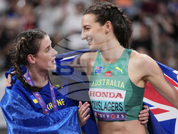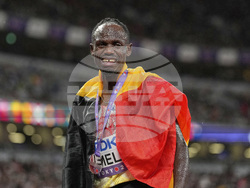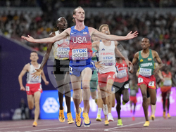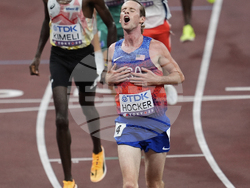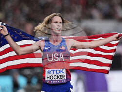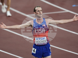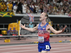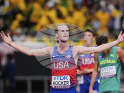 Дисквалифицираният в полуфиналите на 1500 метра Коул Хокър от САЩ взе своя реванш във финала на 5000 метра при мъжете, в който се поздрави със световната титла.