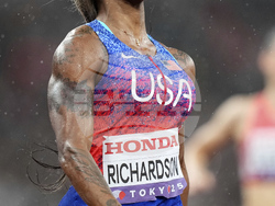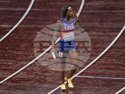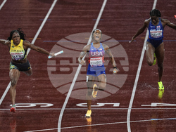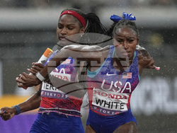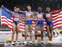 При жените Мелиса Джеферсън-Уудън, Туаниша Тери, Кайла Уайт и Ша'Кари Ричардсън постигнаха време от 41.75 секунди. За Джеферсън-Уудън това бе трети златен медал на първенството, с което тя стана и най-успешната атлетка на шампионата в Токио. На второ място с 41.79 секунди се класира щафетата на Ямайка, която бе водена от четирикратната световна шампионка в тази дисциплина Шели-Ан Фрейзър-Прайс. С бронза се окичи отборът на Германия, който финишира за 41.87 секунди.