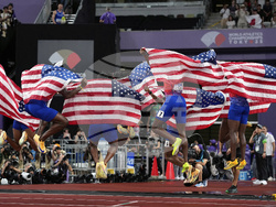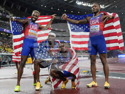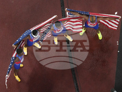 В щафетите на 4х100 метра отборите на САЩ взеха златото и при мъжете, и при жените.