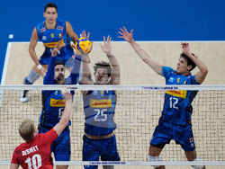 Световните шампиони се наложиха над Белгия с 3:0 (25:13, 25:18, 25:18) гейма и взеха реванш за поражението си от същия съперник в груповата фаза. "Адзурите" бяха изключително убедителни във всеки елемент на играта и не допуснаха да има интрига в нито една от трите части на срещата.