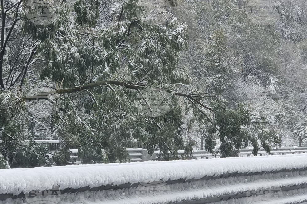БТА, Автомагистрала „Хемус“ (3 октомври 2025) Сняг и паднали дървета в района по автомагистрала „Хемус“ в района на тунел „Витиня“.Снимка: Константин Костов/БТА (ПБ)