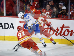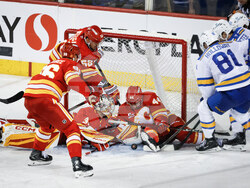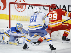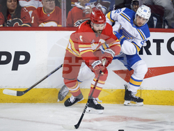В Калгари, Сейнт Луис Блус отбелязаха две попадения за две минути и половина в третия период, за да надделеят над Флеймс с 4:2. Вторият гол на Джейк Нейбърс се оказа победният, като гостите спечелиха първата си победа за сезона.