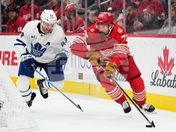 Ред Уингс обаче се съживиха през втората третина, като реализираха три безответни гола и поведоха преди последната част. Макс Доми беше точен за Торонто по-малко от три минути след началото на последния период, но малко след това ударът на Лукас Реймънд при числено превъзходство реши резултата. Домакините добавиха още две шайби в края, за да подпечатат впечатляваща победа.