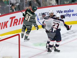Кълъмбъс Блу Джакетс разгромиха със 7:4 Минесота Уайлд. Гостите бяха точки в рамките на първите три минути и в трите части, като в началото взеха преднина от 2:0. Матю Болди и Кирил Капризов изравниха резултата. Блу Джакетс отново поведоха, след като точен беше Кирил Марченко. Руснакът отбеляза хеттрик в този мач и въпреки че Минесота успя да намали пасива си до два гола, те в крайна сметка допуснаха още един в края, за да загубят първия си домакински двубой.