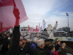 Екремоглу, който е от основната опозиционна Народнорепубликанска партия (НРП), говори качен на платформата на покрива на автобус, пред многохилядно множество, което още в ранните часове на деня се бе събрало пред съдебната палата в негова подкрепа.