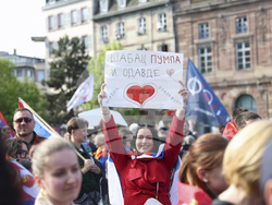 За студентите беше организиран прием на площад „Клебер“ в Страсбург, където се събраха много граждани, младежи, деца, както и охрана, която регулира всичко. На място присъстват и телевизионни екипи от Белград. Студентите бяха посрещнати с червен килим, който ги очакваше във всички градове, които посетиха на път за Страсбург.