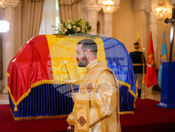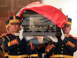 Рано тази сутрин тялото му бе транспортирано с катафалка до президентския дворец Котрочени и положено в Залата на обединението, където се провеждат най-важните държавни церемонии.