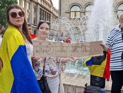 Близо 200 души протестират и в този час на площада пред университета в Букурещ срещу указа за обявяване на национален траур в памет на бившия румънски президент Йон Илиеску. Инициатор на демонстрацията е гражданската активистка група „Корупцията убива“. Сред участниците, които са предимно възрастни хора, е и бившият евродепутат и настоящ лидер на извънпарламентарна партия ДРЕПТ Влад Георге, който донесе бели цветя и свещи, видя на място БТА.