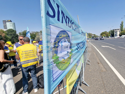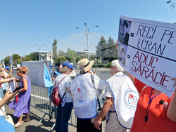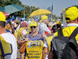 Няколкостотин учители от различни краища на Румъния протестираха днес пред сградата на правителството на площад „Виктория“ в Букурещ. Те скандираха "оставка" и огласиха района с вувузели, свирки и тъпани. Акцията продължи цял час, въпреки жаркото слънце.