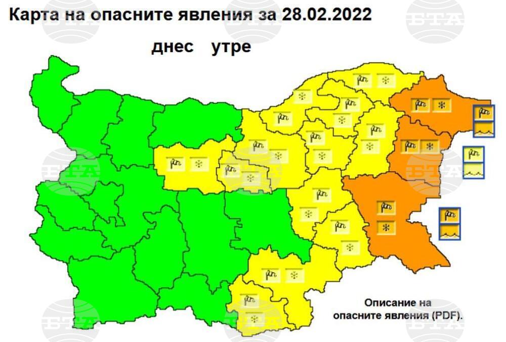 site.btaЖълт и оранжев код за значителни валежи и за силен вятър издаде Националният институт по метеорология и хидрология