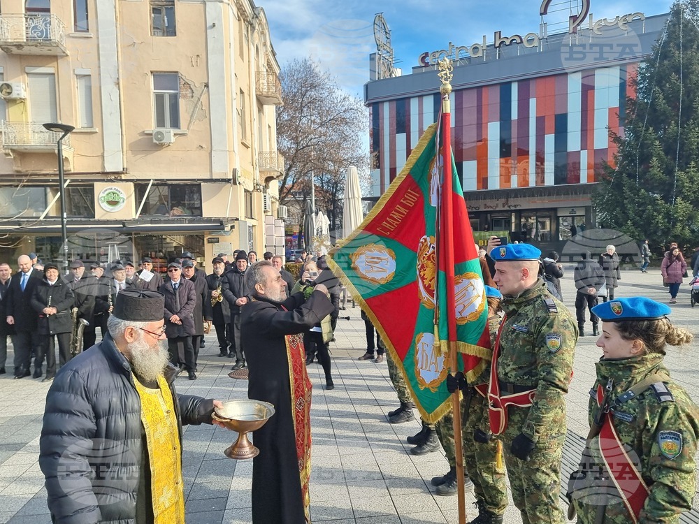 В Плевен се състоя Богоявленски водосвет на бойните знамена. Тази година ритуалът бе на площад „Свободата“ пред паметника, издигнат в чест на Девета пехотна плевенска дивизия.