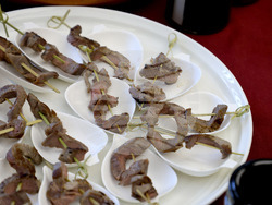 Своите солени сладка от еленски бут и от червени чушки представи Васил Александров от Пловдив. Предлагат се в гурме разфасовки и в тях няма захар, а петмез от захарно цвекло и червен лук, посочи младият кулинар. Проучванията му показват, че на пазара няма подобни продукти, а от тях могат да се възползват както елитните ресторанти, така и в домашна обстановка от любители на креативната кухня.