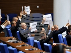 Йордан Тодоров ("Възраждане") поиска в декларацията на парламента да се добави още една точка - „остро осъжда задържането на политическите затворници и призовава за тяхното незабавно освобождаване“. Редакционната поправка беше отхвърлена със 43 гласа „за“, 123 „против“ и 10 „въздържал се“.