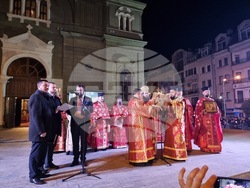Минути преди полунощ беше изнесен Благодатният огън, а малко след това площадът пред храма беше огласен от камбанен звън и осветен от заря. Миряните обиколиха църквата в лития, за да споделят радостта от Възкресението на Спасителя.