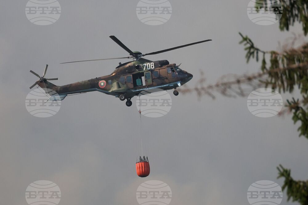 Вторият екипаж от състава на 24-а авиобаза в Крумово с вертолет AS-532 AL Cougar продължава да помага за потушаването на пожара до Сунгурларе, уточняват от военното министерство.