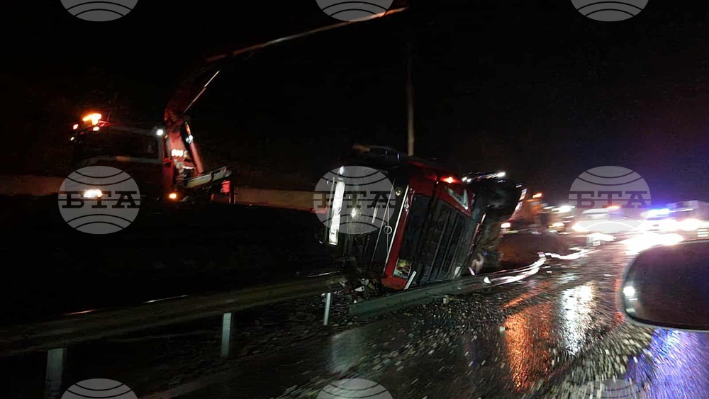 Тир се е обърнал на пътя Мездра- Ботевград, след разклона за Лютидол, видя репортер на БТА.