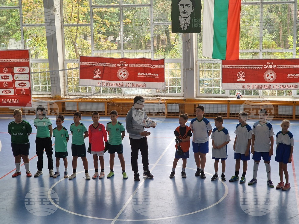 БТА, Разград (2 октомври 2025) Момичета и момчета от разградски училища показаха футболни умения и се забавляваха заедно в турнир „Арена Саяна“. Спортната проява под наслов „Не се ограничавай, а се забавлявай“ бе организирана от компания „Саяна“ в партньорство с Българската асоциация по мини футбол, и със съдействието на Българския футболен съюз и програмата „Хайде да ритаме“. Турнирът се проведе в спортната зала на Основно училище „Васил Левски“. Снимка: кореспондент на БТА в Разград Садет Кърова (ВЯ)