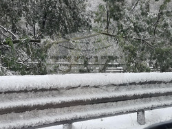 Паднали дървета и сняг затрудняват движението по магистрала „Хемус“ в района на тунел „Витиня“. Има заледявания по пътя. Автомобилите се придвижват бавно. Аварийните ленти са непроходими.