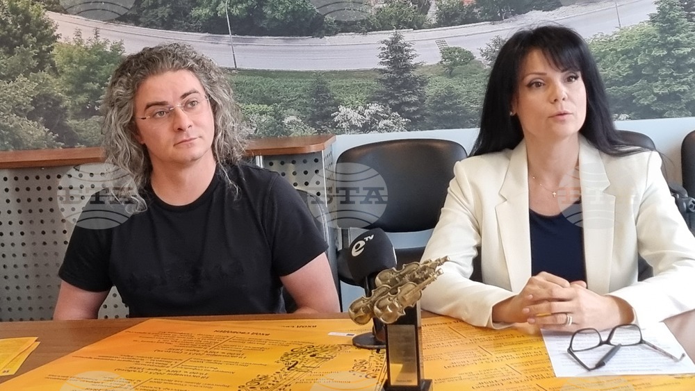 БТА, Хасково (9 октомври 2025) Пресконференция се състоя по повод Юбилейното 50-то издание на Музикални дни "Проф. Недялка Симеонова" и едноименния Международен конкурс за млади цигулари в Хасково. В конкурса ще се състезават 14 млади инструменталисти за награден фонд от 8 700 лева. Предвидени са 4 симфонични концерта. На снимката (от ляво надясно): диригентът на местния Камерен оркестър Цанислав Петков и заместник-кметът на Хасково Мария Вълчева.Снимка: кореспондент на БТА в Хасково Николай Грудев (ВЯ)