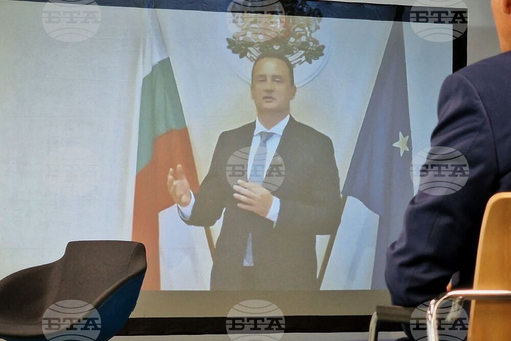 БТА, Бургас (24 октомври 2025) Конгресният център на Морска гара е домакин на Международния форум “Черно море 2030”. Изданието се провежда под мотото: “Партньорство за устойчиво бъдеще” и поставя акцент върху няколко ключови теми - зеленият преход, опазването на морската и крайбрежната среда, дигитализацията и насърчаването на иновации в синята икономика. Във форума участват представители на публичния сектор, академичните среди и морския бизнес. Организатор на събитието е Община Бургас, в партньорство със Сдружение “ПроспектиМ” и с подкрепата на научната общност, бизнес средите и неправителствения сектор. Форумът стартира с откриващ панел на тема: “От политика към практика: Пътна карта за ускорен син растеж на черноморския регион”. На снимката: видеообръщение на министърът на енергетиката Жечо Станков.Снимка: Христо Стефанов/БТА (ПК)
