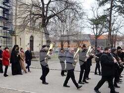 По-късно от храма потегли шествие начело с Градския духов оркестър и се отправи към бюст-паметника на Васил Левски в града, където се проведе церемонията по повод 151 години от обесването на Апостола на свободата.