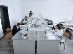 Гимназията впечатлява с изцяло обновена и модернизирана сграда, която съчетава съвременна архитектура, функционални пространства и комфортна учебна среда. Училището е оборудвано с високотехнологични кабинети и лаборатории, компютърни зали с последно поколение техника, мултимедийни класни стаи, както и специализирани работилници за практическо обучение. Нашата материално-техническа база осигурява реални условия за учене чрез практика и гарантира, че всеки ученик се обучава с ресурсите на бъдещето – днес.