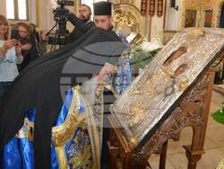 Владиката пристигна в най-старата хасковска църква заедно с Чудотворната икона на Пресвета Богородица "Златна ябълка". Митрополит Николай беше посрещнат на прага на храма от деца в народни носии и с цветя за Владиката. Негово Високопреосвещенство благослови вярващите и всички жители на Хасково. За да се преклонят пред Чудотворната икона на Божията Майка в храма бяха областният управител на Хасково Гинка Райчева, заместник-кметът на Община Хасково Мария Вълчева, представители на Българската армия, стотици миряни. Чудотворната икона Пресвета Богородица „Златна Ябълка“ се пази в храма в кв. Горни Воден в Асеновград и е създадена през XVII в. Хората се молят пред нея най-вече за рожба и с благодарност за сторените чудеса от Божията майка.