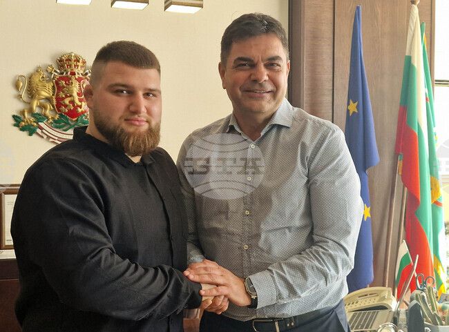 Кметът на Димитровград Иво Димов прие европейския шампион по борба за младежи до 23 години Георги Иванов