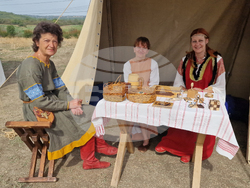 Д-р Калина Атанасова от Варна демонстрира реконструкции на български средновековни облекла и накити по стенописи от църкви от периода 13-14 век. За БТА тя разказа, че се занимава с това от 20 години и се е постарала да покаже всички видове дрехи на тогавашните социални прослойки. Сред изобразените от нея са аристокрацията, духовенството, болярите, царете, войниците, простолюдието и военните съюзници на българите – куманите, обитавали и крепостта „Ряховец“. Д-р Атанасова понякога работи по конкретни портрети на болярите, изобразявани в църквите на семейните имения. Те са много ценни, защото ги показват в цял ръст, в естествен размер, заедно със семействата им, обясни тя. За селските облекла помагат най-вече археологическите разкопки. Тези дрехи са предимно женски, защото починалите млади жени са били погребвани с най-хубавите си одежди като за сватба. В нашия климат оцеляват предимно металните предмети или неща, които са се допирали до тях, разказа д-р Атанасова. Често пъти по това време дрехите са били украсявани и със сърма, която представлява метализиран текстил и това много помага да се установи как са изглеждали. На щанда на д-р Атанасова имаше и копия на средновековни щитове, а на посетителите тя демонстрира и средновековни танци по запазена от тогава музика.