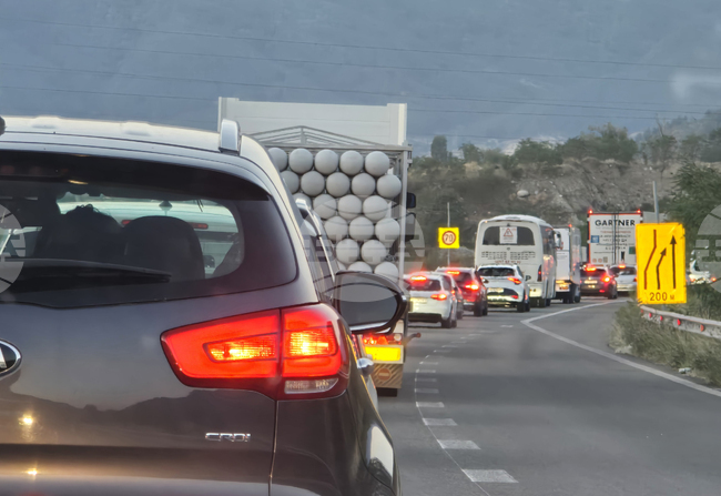 Движението при 381 км по пътя Симитли – Кресна в посока Кулата се осъществява с повишено внимание заради разпилян товар