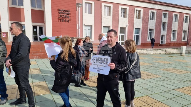 Протест против изграждането на ветроенергийните паркове на територията на община Шабла се проведе пред общината
