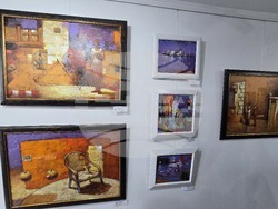 В експозицията на Румен Нисторов са подредени близо 20 творби – пастел, рисунки с въглен, живопис и др.