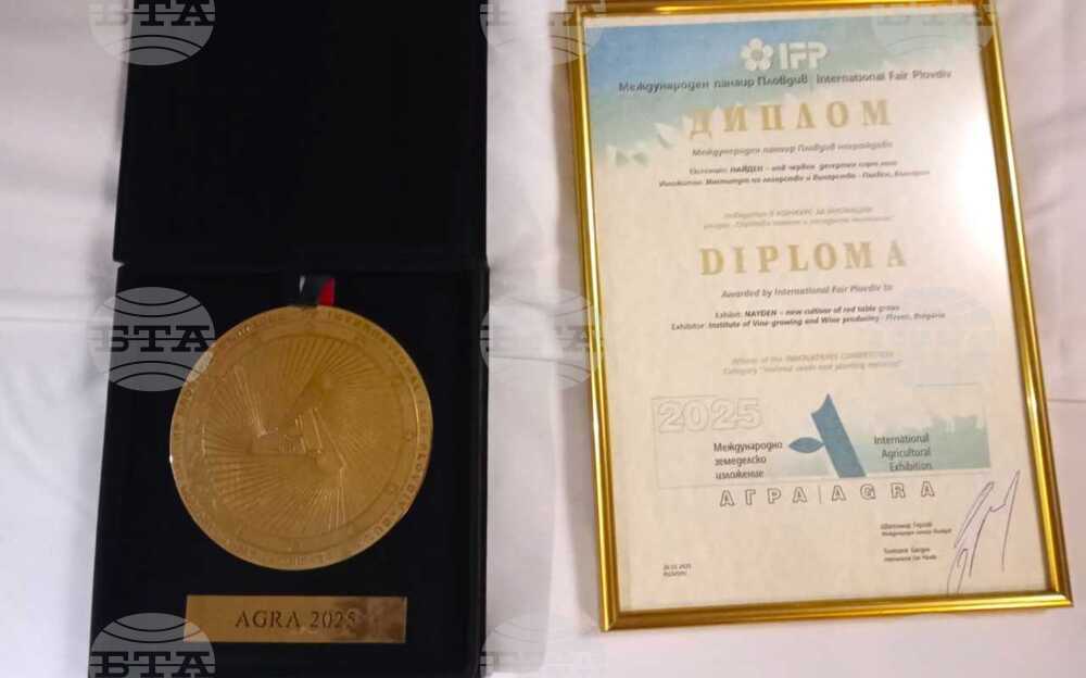 Плевенският Институт по лозарство и винарство (ИЛВ) е победител в конкурса за иновации от Международното изложение "АГРА 2025", което се провежда в Пловдив. Отличието в раздел "Сортови семена и посадъчен материал" е за разработения в Плевен десертен сорт "Найден", съобщи директорът на института доц. д-р инж. Емил Цветанов и благодари на журито за признанието и високата оценка.