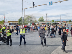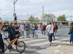 Жителите на с. Труд блокираха временно движението по Карловско шосе Снимки: кореспондент на БТА в Пловдив Таня Благова
