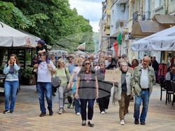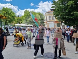 Протестиращите се отправиха към Община Шумен. Пред паметника на Добри Войников до Драматично-кукления театър "Васил Друмев" те изпяха химна на България под съпровода на уличен музикант.
