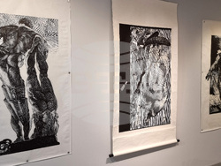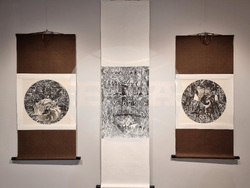 Някои от творбите му във варненската галерия са отпечатани на свитъци според традиционния азиатски начин на излагане на печатно изкуство. Правени са в Китай по време на трите му престоя в графичната база в Гуанлан, където може да се печата в голям формат с помощта на много асистенти, посочи авторът. Повечето са на дърво, но има на МДФ, както и на плексиглас, което е трудна техника поради твърдостта му. Художникът е експериментирал и с гравюри на дърво, отпечатани заедно с пресовани дървени плоскости, използвани в строителството, които ползва за контрапункт за фината графика, за да противопостави външното и вътрешното, малкия и големия свят. Печатани са на китайска хартия, която се пренася на свитъци, в които има и копринен слой, на принципа мокро в мокро (шинколе).
