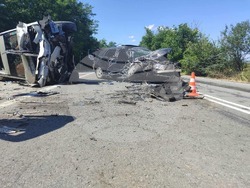 По първоначална данни са се ударили две пътни превозни средства. Екипите, работещи на мястото на катастрофата, изваждат пътниците и водачите от автомобилите.
