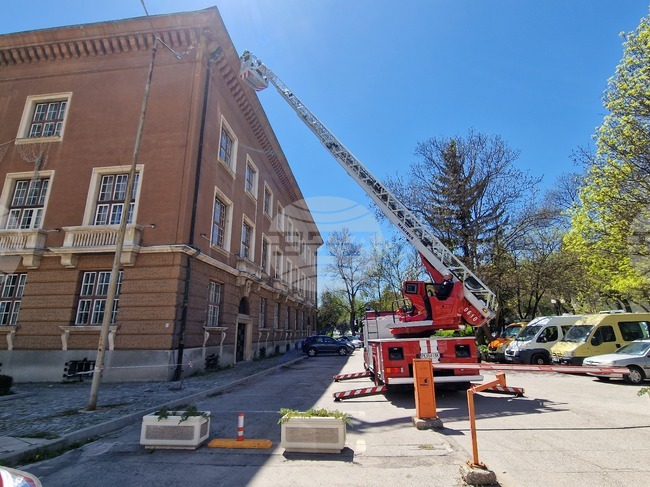 Екип на пернишката пожарна направи укрепване на бордова ламарина от покривната конструкция на сградата на Минната дирекция