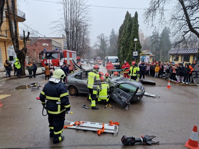 С демонстрации на действия при тежко пътнотранспортно произшествие и горяща кола отбелязаха Деня на доброволеца във Вършец