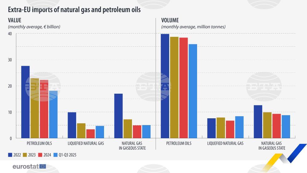 site.btaВносът на петрол в ЕС спада през първите девет месеца на 2025 г., докато доставките на втечнен природен газ нарастват