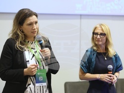 Изпълнителният директор на Центъра за компетентност (Cleantech Bulgaria) Марияна Хамънова и изпълнителният директор и член на Управителния съвет на "Джуниър Ачийвиънт България" (JA Bulgaria) Милена Стойчева откриха панела, организиран в сътрудничество с Европейския институт за иновации и технологии (EIT), посветен на подкрепата за иновации и таланти в областта на технологиите.